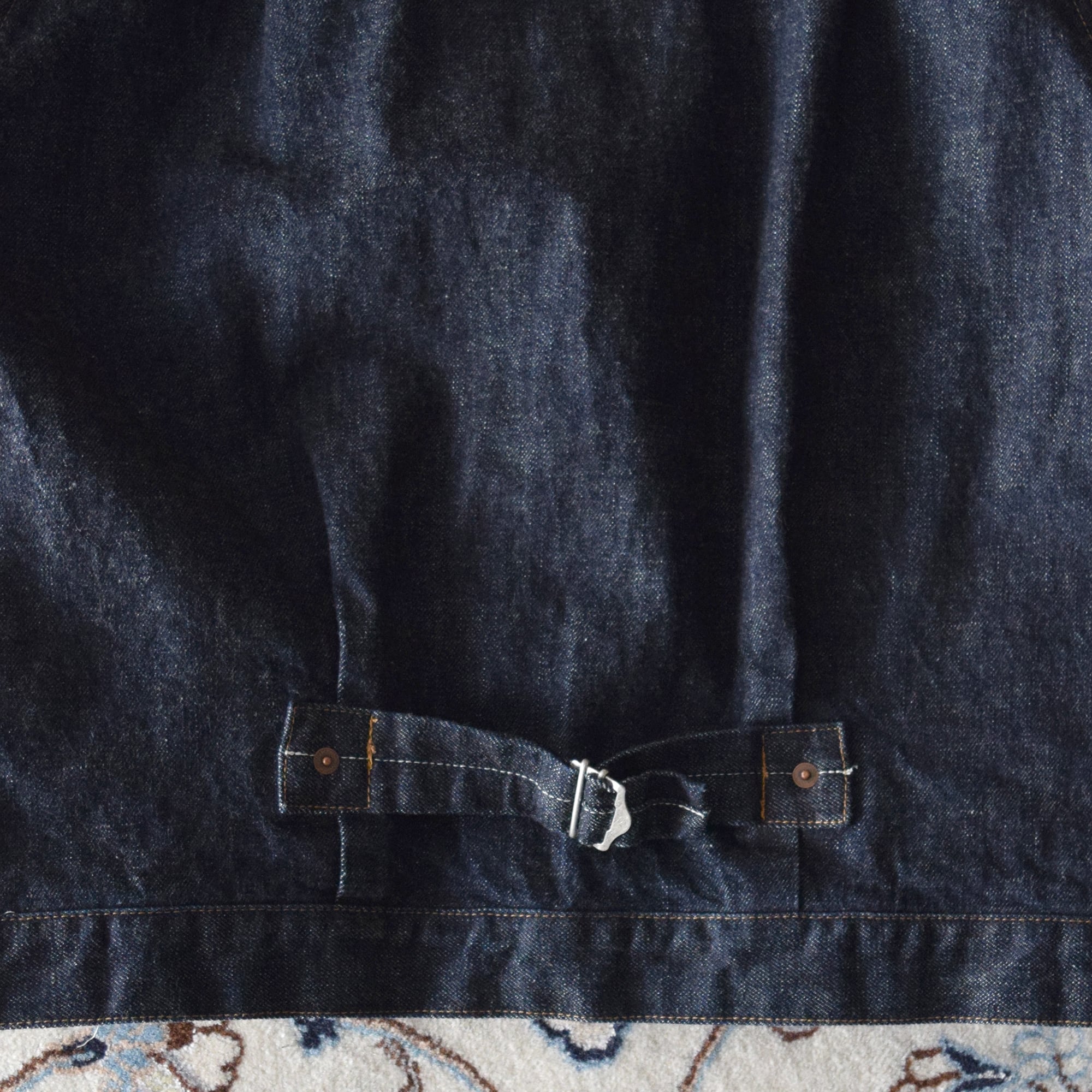ワンウォッシュ(製品洗い)をかけた状態でのお届けになります。着込むごとに馴染んでいきヒゲやアタリが出来ていきます。自分だけの経年変化を楽んで下さい。